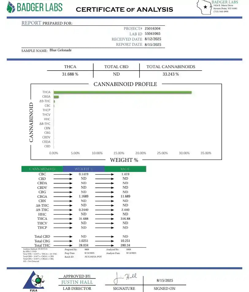 Blue Gelonade is a cannabis strain bred by Grounded Genetics. Blue Gelonade is a pairing of Gelonade and Blucci. Blue Gelonade’s mother, Gelonade, is a legendary pairing of the Lemon Tree S1 and Gelato #41. It was the most award-winning strain that came out of Connected Cannabis Co.’s work breeding Gelato #41. Blue Gelonade’s terpene profile combines the creamy lemon terps of Gelonade with the paint thinner notes of Blucci.